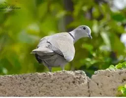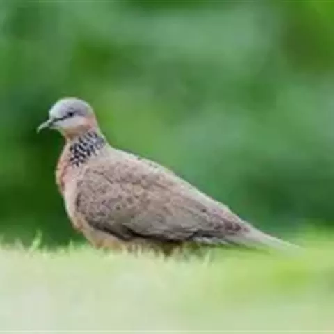 山斑鸠 习性:常成对或成小群活动,有时成对栖息于树上,或成对一起飞行和觅食。如伤其雌鸟,雄鸟惊飞后数度飞回原处上空盘旋鸣叫。在地面活动时十分活跃,常小步迅速前进,边走边觅食,头前后摆动。飞翔时两翅鼓动频繁,直而迅速。有时亦滑翔,特别是从树上往地面飞行时。鸣声低沉,其声似‘ku-ku-ku’反复重复多次。
