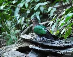 绿背金鸠体长约25厘米,是中等体型、尾甚短的地栖型斑鸠。下体粉红,头顶灰色,额白,腰灰,两翼具亮绿色。…