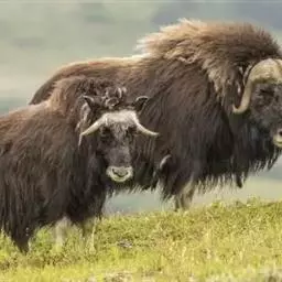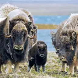 麝牛,是偶蹄目牛科麝牛属哺乳动物。麝牛体型大,但低矮粗壮,头大,吻部宽,眼小;雌雄均具角,四肢短粗,…