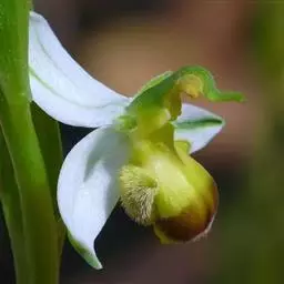 花瓣倒卵状披针形,长11-15毫米,中部宽3-5毫米,先端锐尖或稍钝,基部收狭为爪,具3条脉,无毛;唇瓣红褐色,基部合生于整个蕊柱翅上,3裂;侧裂片小,耳状或近半圆形,长约4毫米,宽4-5毫米;中裂片肾形,长8-10毫米,宽10-18毫米,先端微凹并具短尖,边缘强烈波状;唇盘上具3-5条鸡冠状褶片,无距;蕊柱粗短,长约6毫米,腹面疏生毛;蕊喙2裂;裂片三角形,长约1毫米,先端急尖;药帽在前端收狭呈喙状;花粉团狭倒卵状球形,长约2毫米,具明显的柄;粘盘小,椭圆形,长约1毫米。花期5-6月。