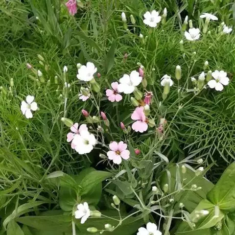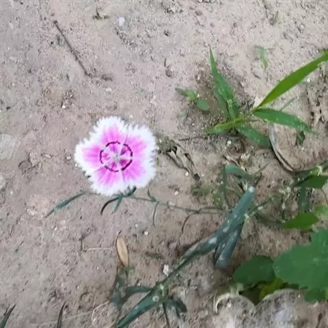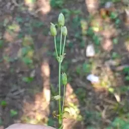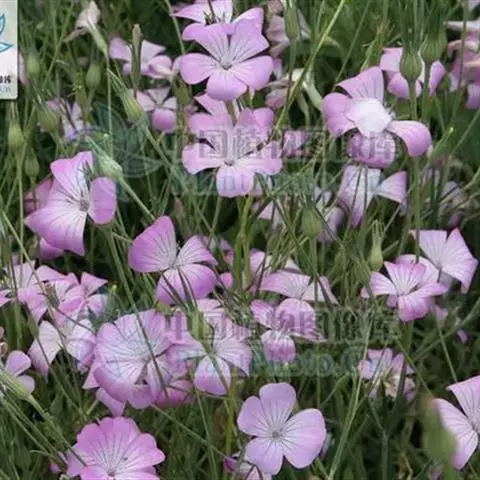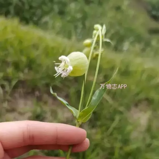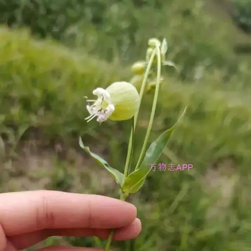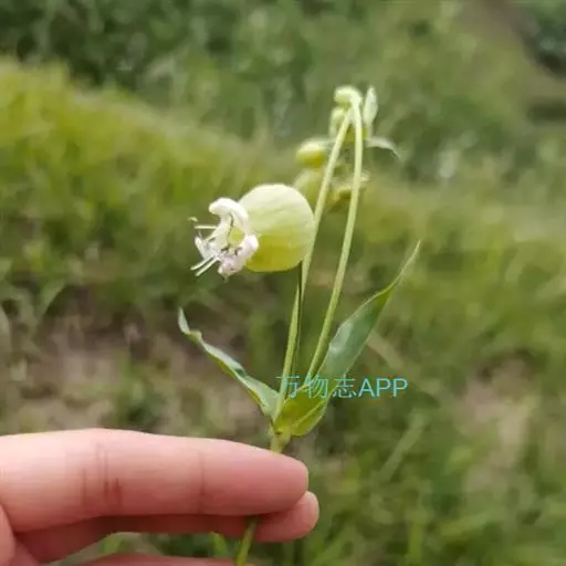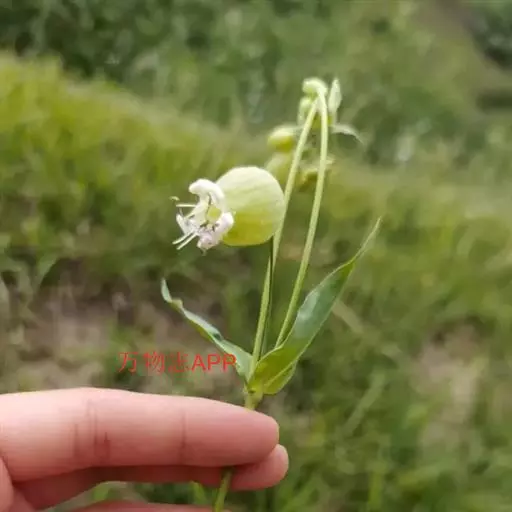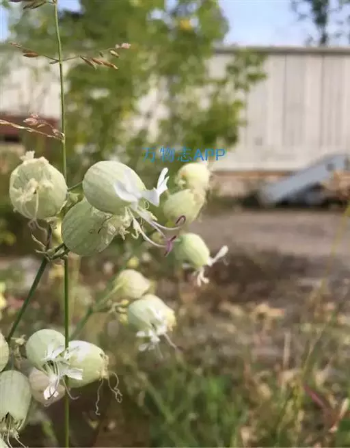 多年生草本,高40-90余厘米,全株无毛,呈灰绿色。根多数,略呈细纺锤形。茎直立,丛生,上部分枝,节 狗筋麦瓶草 部膨大。叶披针形至卵伏披针形,长5-8厘米,宽1-2.5厘米,茎下部叶基部渐狭成短柄,先端急尖或渐尖,边缘具刺状微齿,中脉明显,茎上部叶无柄,基部抱茎,边缘平滑。花顶生,形成较稀疏的大形聚伞花序;花梗下垂,与萼等长或比萼短;萼筒广卵形,膜质,膨大成囊泡状,无毛,长14-16毫米,宽7-10毫米,具20条脉,脉间由多数网伏细脉相连,常带紫堇色,萼齿三角形,先端急尖,边缘具白色微毛;雌雄蕊柄长约2毫米,无毛;花瓣白色,平展,约比萼长出半倍,长15-17毫米,瓣片2深裂几达基部,爪上部宽,基部渐狭,瓣片及爪部之间无鳞片状附属物;雄蕊超出花冠;子房卵形,长约3毫米,花柱3枚,超出花冠。蒴果略呈球形,径约8毫米,平滑有光泽,6齿裂;种子肾形,成熟时黑褐色,长约1.5毫米,宽1.2毫米,表面被乳头伏突起。
