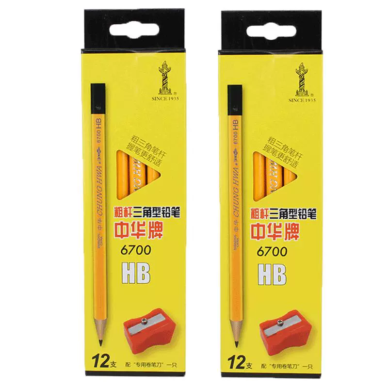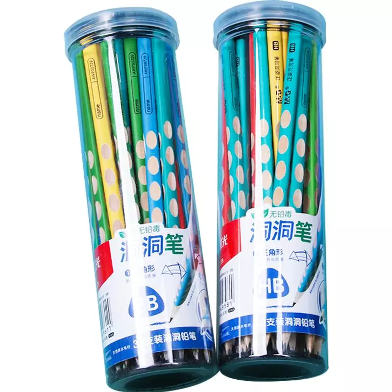 “普通笔杆”,就是铅笔生产厂家将铅笔芯用木杆压住,这种铅笔需要消费者将笔尖削出后才能使用;另外在普通铅笔杆的末端有一小块橡皮,在书写错误时,可以把笔反过来擦除错误,较方便,由美国画家阿曼发明。