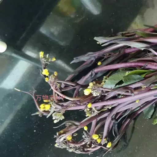 紫菜薹,别名红菜薹、红菜、红油菜薹,它与广东菜心是属于同一变种,为十字花科芸薹属芸薹种白菜亚种的变种,一二年生草本植物,是原产中国的特产蔬菜,主要分布在长江流域一带,以湖北武昌和四川省的成都栽培最为著名。