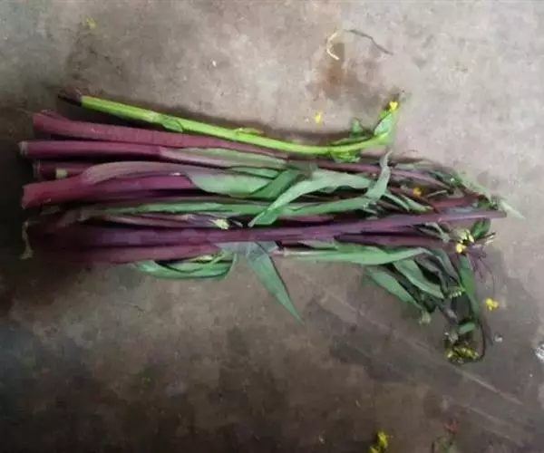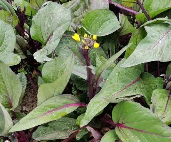 (4)采收:秋茬紫菜薹主薹采收后,正值侧菜薹盛发期时,气温下降,生长缓慢,因此主薹要更早采收,达15厘米长后即采摘,促使侧薹早发快长。一般只能收1次或2次侧薹,采收期较短,产量较春茬低,但采收期处于较低的温度,菜薹的品质较好。