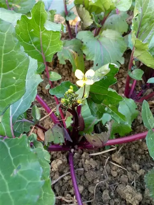 红菜薹的根系不发达,无明显的主根。根系入土深度40cm左右,横向伸展半径40cm。叶有二种:一种为莲座叶,是制造营养的器官,多为桃心圆形叶,卵圆形,且有明显2~3片大裂片和多个小裂片。花薹上着生的叶片称为薹生叶,薹生叶也为食用部分,薹生叶呈卵圆形或呈披针形,一般细小无裂片,薹生叶柄短以至退化。茎有二种:一为粗壮的短缩茎,短缩茎一般长12cm左右,直径5.0cm,其上着生叶片,且抽生花薹。二为花薹茎,包括主花薹和侧花薹均从短缩茎上发生。花薹茎肥嫩,末木质化之前为红菜薹的食用部分,花薹一般在25~35cm长采收为宜,这时,花薹最肥大处直径为1.5~2.5cm,有幼嫩叶3~5片,花薹梢有花蕾,3~5朵黄色小花开放,外观艳人。