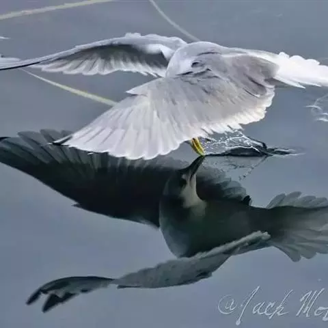 西美鸥:大型海鸥,体长66厘米,翼展132-142厘米,体重800-1250克。头部及身体呈白色,…