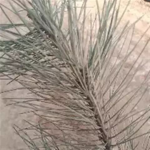 针叶2针一束,深绿色,粗硬,长10-15厘米,径约1.5毫米,边缘有细锯齿,两面具气孔线;横切面半圆形,二型层皮下层,在第一层细胞下常有少数细胞形成第二层皮下层,树脂道5-8个或更多,边生,多数生于背面,腹面有1-2个,稀角部有1-2个中生树脂道,叶鞘初呈淡褐色,后呈淡黑褐色。