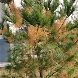 ③、病虫害防治对绿化油松病虫害防治应遵循“及时发现,积极防治、治小治了”的原则,在生长季发现病虫害后,要及时组织用药防治。冬季树干要涂白或喷石硫合剂,消灭树干虫卵及蛹。