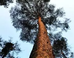 油松为乔木,高达25米,胸径可达1米以上;树皮灰褐色或褐灰色,裂成不规则较厚的鳞状块片,裂缝及上部树皮红褐色;枝平展或向下斜展,老树树冠平顶,小枝较粗,褐黄色,无毛,幼时微被白粉;冬芽矩圆形,顶端尖,微具树脂,芽鳞红褐色,边缘有丝状缺裂。