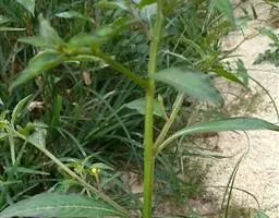 一年生粗状直立草本;茎高30-150厘米,粗3-1.2厘米,四棱形,带紫红色,多分枝,无毛或被微柔毛。叶狭椭圆形至狭披针形,长(2-)3-10厘米,宽(0.5-)0.7-2厘米,先端渐尖,基部狭楔形,侧脉每侧8-13条,两面隆起,在近边缘彼此环结,但不明显,脉上疏被微柔毛;叶柄长4-13毫米;托叶很小,卵状三角形,长约1.5毫米。