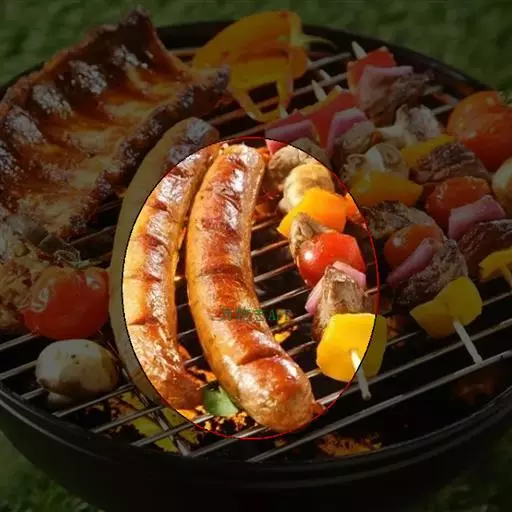 【用料】番茄酱2汤匙(30ml),甜玉米、豌豆各2汤匙(30G),红椒1/2个 ,香肠50G ,奶酪100G ,黑胡椒2G ,油少许