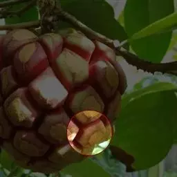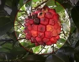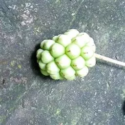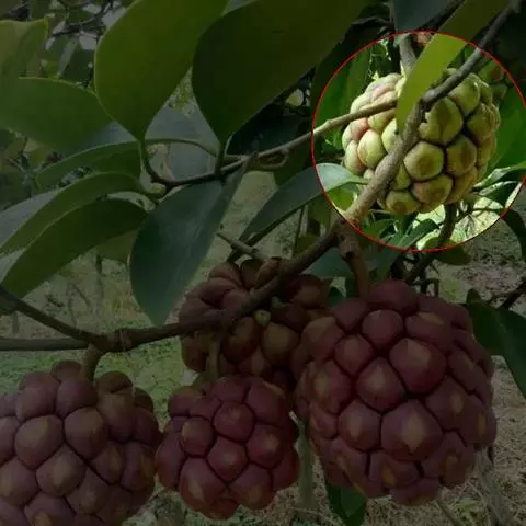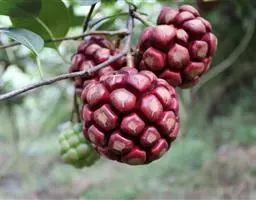 聚合果近球形,直径2.5-4厘米;成熟心皮倒卵圆形,长10-22毫米;干时革质而不显出种子;种子2-3粒,少有4-5粒,长圆状肾形,长5-6毫米,宽3-5毫米。花期5-8月,果期8-12月。