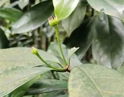 花单生于叶腋,雌雄异株,花被片白色或浅黄色,11-15片,外轮和内轮的较小,中轮的最大1片,椭圆形至倒卵形,长8-16毫米,宽5-12毫米;雄花:花托椭圆体形,顶端伸长圆柱状,圆锥状凸出于雄蕊群外;雄蕊群椭圆体形,长6-7毫米,径约5毫米,具雄蕊50-65枚;雄蕊长0.8-1.8毫米;花丝与药隔连成近宽扁四方形,药隔顶端横长圆形,药室约与雄蕊等长,花丝极短;花梗长3-20毫米,具数枚小苞片。雌花:雌蕊群近球形,径6-8毫米,具雌蕊30-55枚,子房长圆状倒卵圆形,花柱顶端具盾状的柱头冠;花梗3-30毫米。