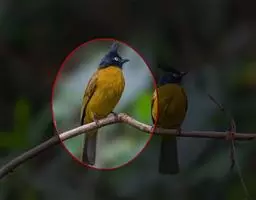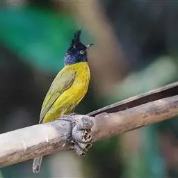 黑冠黄鹎:体长18-21厘米,是一种中等体型偏黄色鹎。整个头、颈、颏、喉黑色,头顶有显著直立的羽冠,…
