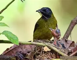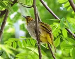 纹喉鹎:体长19厘米,是一种中等体型的偏绿色鹎。特征为头顶、脸颊、颏及喉均具黄色条纹。上体橄榄绿色。…