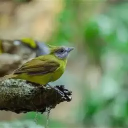 黄绿鹎,小型鸟类,体长19-22厘米。额至头顶暗褐具灰色羽缘,眼先黑色,…