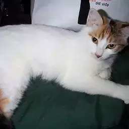 斑点阴影色和白色VAN SHADED AND WHITE: 白色带有彩色色块,这些色块限制在猫咪的头、尾巴和腿部。彩色色块的标准遵循通行的阴影色的标准。身体有一到两块小型的色斑是允许的。
