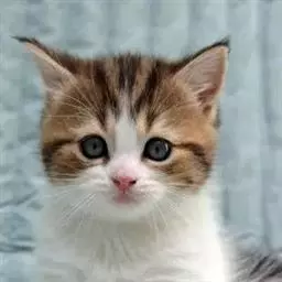 三色CALICO: 白色带黑色和红色的斑块。猫的足、腿、身体下侧面和鼻口是白色的话更好。如果白色超过这个范围给予相称的扣分。脸上由鲜明毛色形成反转的“V”字。眼色:艳丽的红铜色、蓝色或者金银眼。金银眼则一眼为蓝色一眼为红铜色,并且有同样深的色度。