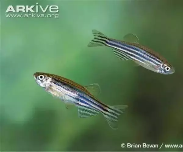 斑马鱼身体延长而略呈纺锤形,头小而稍尖,吻较短,全身布满多条深蓝色纵纹似斑马,与银白色或金黄色纵纹相间排列纹路比较有条理。在水族箱内成群游动时犹如奔驰于非洲草原的斑马群,故此得斑马鱼之美称。斑马鱼和人类基因有着87%的高度相似性,作为模式生物的优势很突出,这意味着其实验结果大多数情况下适用于人体。常可用于水质环境的监测。斑马鱼也是比较好养的一种鱼。