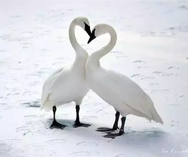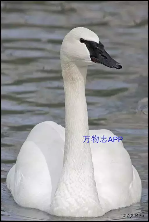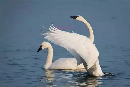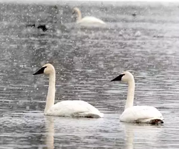 黑嘴天鹅(学名:Cygnus buccinator)是北美最大的原生鸟类,其体重和形态也是生活在地球上最大的水禽。全身洁白,鸟喙黑色,颈特长,在水中游泳时颈垂直朝上,头向前平伸,两翅紧贴两侧身上,身体前部沉入水中较多,后部较少,背部隆起,特别是在侧面观察更为明显。游泳轻盈而缓慢,起飞时两翅不断地拍打水面,两脚在水面奔跑一段距离才能飞起。飞翔时颈向前伸直,两脚伸至尾下,全身除脚和嘴黑色外,其余全为白色。