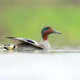 绿翅鸭是小型鸭类,体长37厘米,体重约0.5千克。嘴脚均为黑色。雄鸟头至颈部深栗色,…