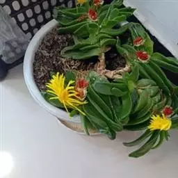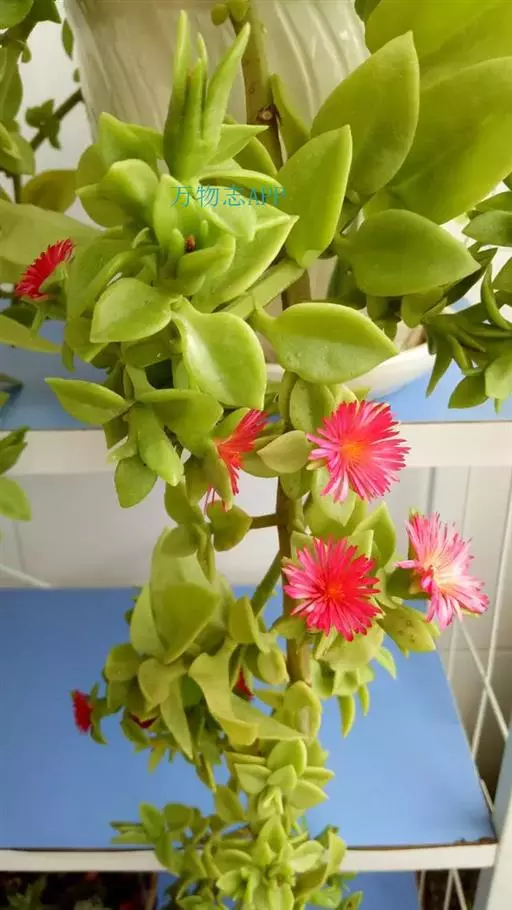 花单生枝端,红色或白色,直径约3~4厘米;苞片对生。叶状;萼片5 深裂,叶状,不等大,花瓣多数,基部稍合生;雄蕊多数;子房5室,无花柱,柱头5,条形。蒴果肉质,干后星状开裂成5瓣;有多数种子。花期早春(温室)或夏秋间。原产南非。青岛中山公园温室常见栽培。供观赏。花朵白天开放,晚上闭合。