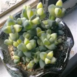 五十铃玉是番杏科窗玉属的多年生肉质植物,别名有“棒叶花”“婴儿脚趾”。植株高5厘米,叶片淡绿色,肉质,…