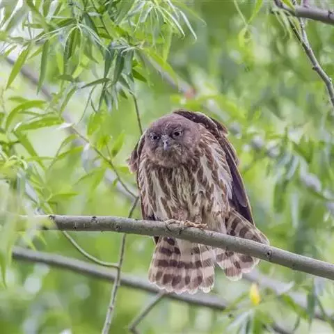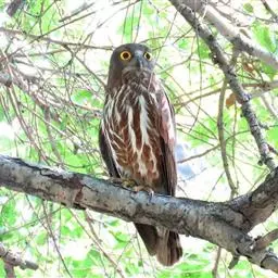 褐林鸮是夜行猛禽。喙坚强而钩曲。嘴基蜡膜为硬须掩盖。翅的外形不一,第五枚次级飞羽缺。尾短圆,…