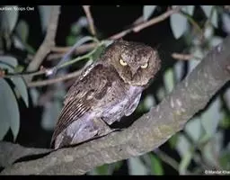 鬼鸮是鸟纲鸱鸮科的鸟类, 全长23-26厘米。共有6个亚种。雌雄羽色相同。额、头顶及枕部褐色,…