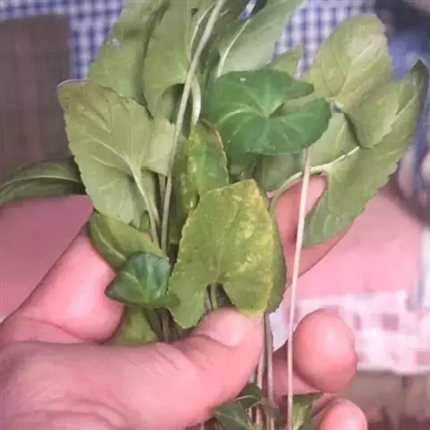 叶2至多数,均基生;叶片卵形或宽卵形,长1-3厘米,宽1-2厘米,果期增大,长可达6厘米,宽约达4.5厘米,先端钝,基部微心形或近圆形,边缘具浅圆齿,两面皆为绿色,无毛或沿叶脉及叶缘有微柔毛;叶柄细弱,长1.5-6厘米,无翅或仅上部具极狭的翅,通常有细短毛或近无毛;托叶外侧者近膜质,内侧者淡绿色,2/3与叶柄合生,离生部分线状披针形或披针形,边缘疏生流苏状短齿。