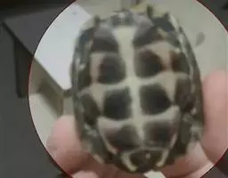 另见两件活体稚山瑞鳖,背盘长约49.0毫米,宽46.5毫米,呈卵圆形,后缘较宽,脊棱明显;背盘表面及棱上瘰粒密集,排列成纵行并与体轴平行。背盘前缘有一列大瘰粒,其后有2-3排小结节。体背黄橄榄色,一稚鳖有棕黑色的小圆斑,9枚,1枚位于脊部,8枚分列于两侧。另一稚鳖斑点不显。稚鳖自头顶开始,有一呈倒V型黄橄榄色斑,并向颈部扩展。其前端有一棕黄色横斑,向两侧达颞部。腹部均为肉色,脐孔已不显。