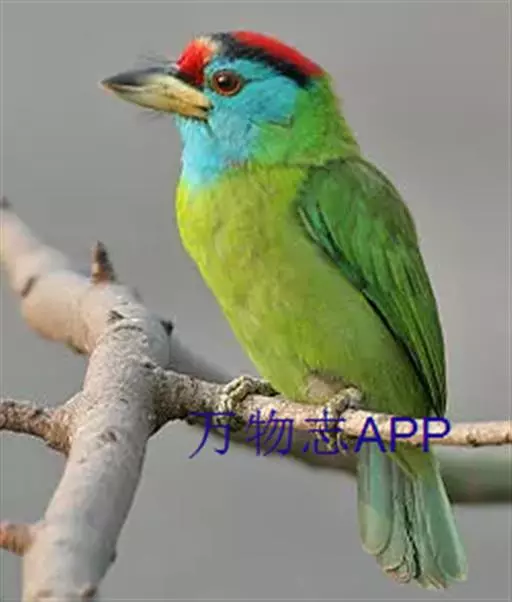 长20cm 嘴粗厚 ,黑色 ,脚铅灰色 。头部大致为蓝色 ,额 、喉黄色 ,眉斑杂有黑色羽毛 ,眼先有红色斑点 ,前颈亦有红斑 。后颈 、背部鲜绿色 , 胸以下鲜黄绿色 。