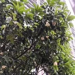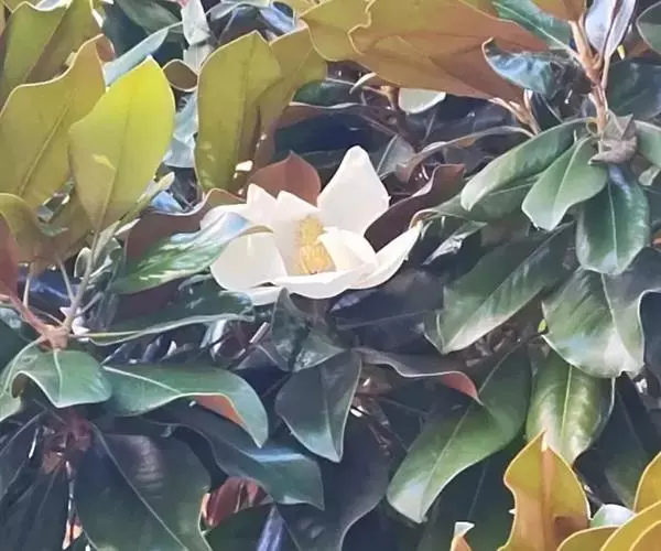 荷花玉兰(学名:Magnolia grandiflora L):常绿乔木,在原产地高达30米;树皮淡褐色或灰色,薄鳞片状开裂;小枝粗壮。叶厚革质,椭圆形,长圆状椭圆形或倒卵状椭圆形,叶面深绿色,有光泽。花白色,有芳香,直径15-20厘米;花被片9-12,厚肉质,倒卵形,长6-10厘米,宽5-7厘米。聚合果圆柱状长圆形或卵圆形,蓇葖背裂,背面圆,顶端外侧具长喙;种子近卵圆形或卵形,长约14毫米,径约6毫米,外种皮红色,除去外种皮的种子,顶端延长成短颈。花期5-6月,果期9-10月。
