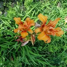 金娃娃萱草:是萱草的人工栽培的园艺品种。地下具根状茎和肉质肥大的纺锤状块根。叶基生,条形,排成两列,…