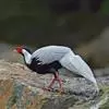 白颈长尾雉:大型鸡类,体长81厘米,体型大小和雉鸡相似。雄鸟头灰褐色,颈白色,脸鲜红色,其上后缘有…