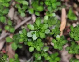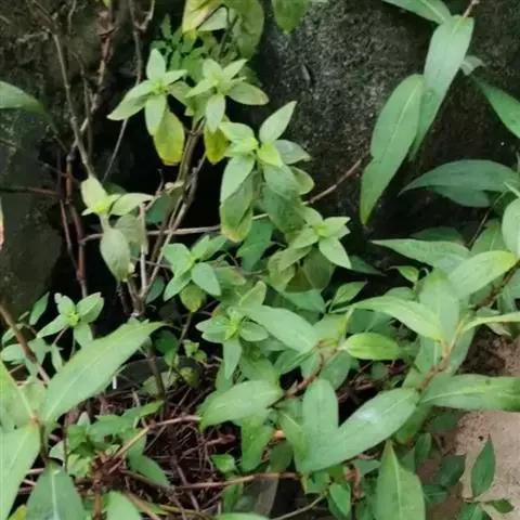 多年生草本,高15-25厘米。茎下部节上生根,上部直立,无毛。叶对生,倒卵形至倒卵状匙形,长17-20毫米,宽6-8毫米,先端钝圆,基部渐狭,入于假叶柄,基部有短距。