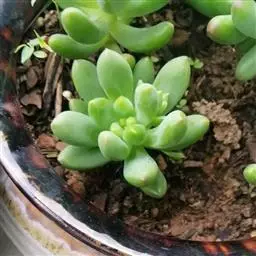施肥景天类植物极耐瘠薄,一般不需施肥。若确实需要施肥养护的,可以在生长季施1至2次肥料,浓度一定要低,以有机氮肥为主。可以在早春季节植物新芽刚开始萌动时,在土壤表面撒施有机肥料,注意一定要量小。要根据肥料包装上的施用方法来进行,切不可妄自加大肥料用量。注意是在景天植物的周围撒有机肥料,切不可碰处植株顶端。 施肥时应注意:若使景天类植株茁壮、旺盛的生长,需要适度施肥。可施用全素肥料100ppm至150ppm,以保证生长迅速且开花良好。在施肥时可多频率的施用氮肥,定期浇清水以淋溶盆土中的盐分,防止无机盐浓度过高而对植株产生伤害。