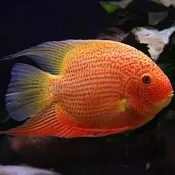 金菠萝鱼,Cichlasoma severum,慈鲷科丽体鱼属。成鱼体长20~25cm,厚侧扁形,…
