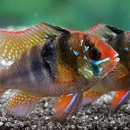 经过12-18个月,地图鱼进入性成熟期。雌雄鉴别特征是:雄鱼头部厚而发达,背鳍、臀鳍尖而长,身体上的斑纹色彩较雌鱼艳丽而多;雌鱼总体较雄鱼粗壮。