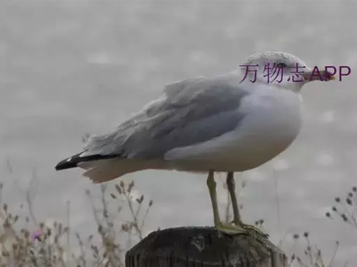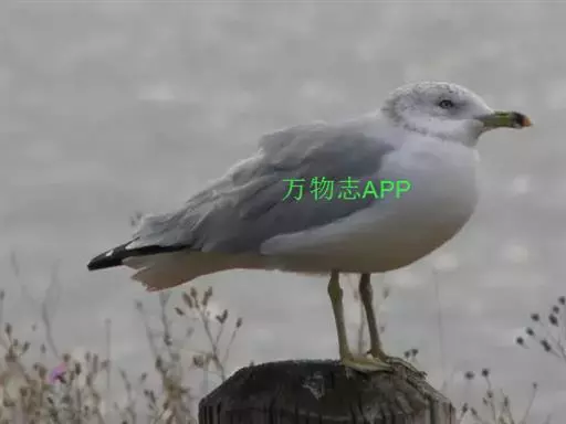 环嘴鸥(学名:Larus delawarensis):是一种常见的鸥, 因嘴巴上的黑环而容易辨认。是中等规模的海鸥。雄鸟比雌鸟大,体长46-54厘米,体重400-700克(平均550克);雌鸟43-50厘米长(平均46.9厘米),体重300-600克(平均470克)。成鸟翼展大约127厘米。头白色,头顶、后头沾灰,眼前缘及耳区具灰黑色斑,嘴黄色,喙先端有一段黑色,喙尖黄色。背部和肩膀都是蓝灰色,翼前缘白色,具有明显的白色斑点,腹部发白。脚和趾黄绿色。