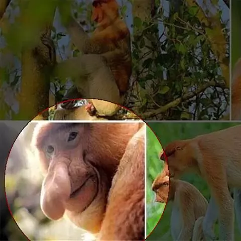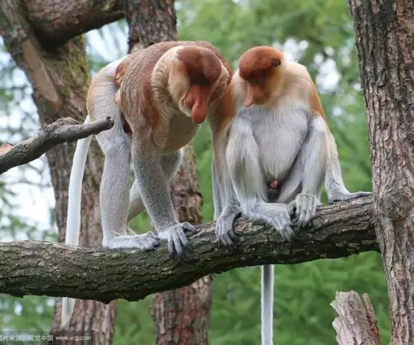 它们的鼻子大得出奇,其中雄性猴子随着年龄的增长鼻子越来越大,最后形成像茄子一样的红色大鼻子,激动的时候,大鼻子就会向上挺立或上下摇晃,而雌性的鼻子却比较正常。