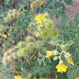 乳茄,茄科茄属直立草本植物,覆盖短的柔毛和扁平尖刺,小枝覆盖长柔毛和扁平刺,刺为蜡黄色,…