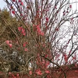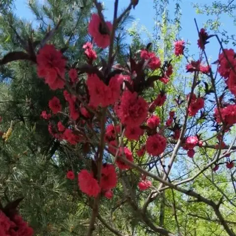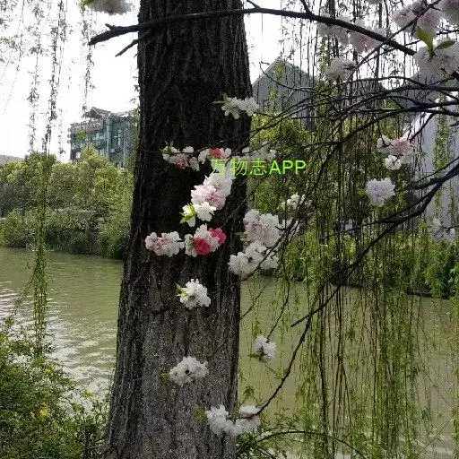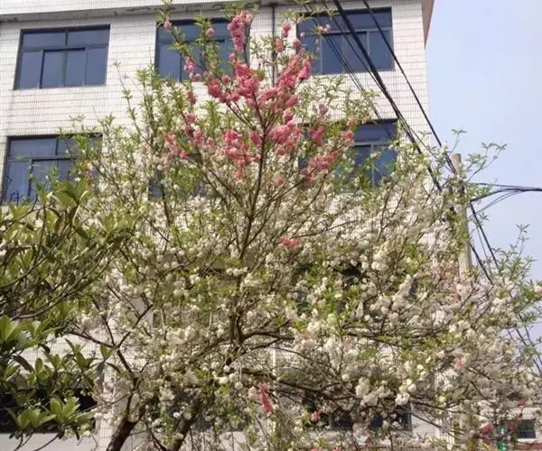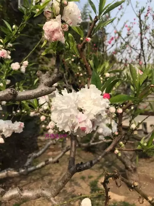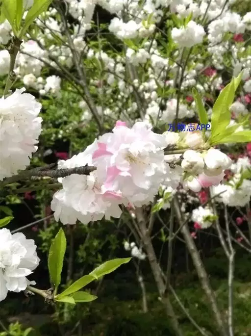 桃(Amygdalus persica)的一个变形,形态特征同桃树,特别之处在花色,通常一株树上有两个花色,有时同一朵花半红半白,非常奇特。花期3-4月。