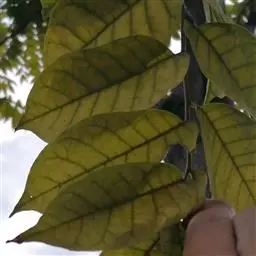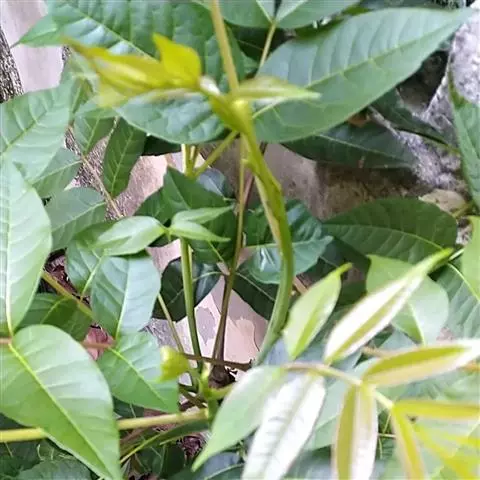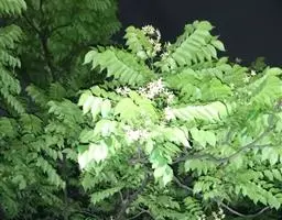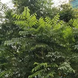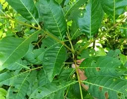 乔木,高20-30米。叶为奇数羽状复叶,长30-50厘米,有小叶9-11(-15)片;小叶对生,初时膜质,后变亚革质,在强光下可见很小的透明斑点,长椭圆形,长18-20厘米,宽约5厘米,最下部的一对较小,先端渐尖,基部楔形或宽楔形,有时一侧稍带圆形,偏斜,两面均无毛,侧脉每边11-12条,纤细,边全缘;小叶柄长6-12毫米。