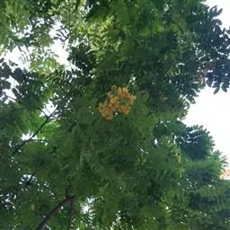 山楝树冠宽阔,呈扁圆形,花黄白色,果实橙黄或橙红色,种子假种皮橘红色,可植为绿荫树。