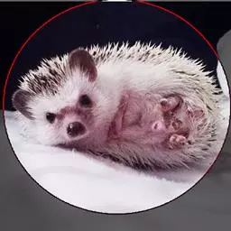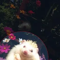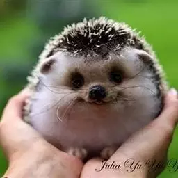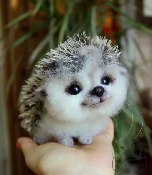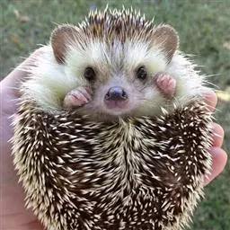 迷你刺猬 迷你刺猬处于宝宝期时只有人类手掌大小,酒杯或者汤匙能够轻松容纳它们。成年期的迷你刺猬,体重300多克,体长10-15厘米,腹部和脸是白色或奶油色的毛,白色的刺混杂著黑色或咖啡色;脸部也许会有较深的颜色像面具一般;脚上低一点的地方通常也会呈现较深的颜色;耳朵的高度比刺的长度短,被毛发环绕覆盖著。