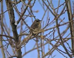 棕眉山岩鹨(学名:Prunella montanella)是岩鹨科、岩鹨属小型鸟类,体长13-16厘米。头和头侧黑色,有一长而宽阔的皮黄色眉纹从额基一直向后延伸至后头侧,在黑色的头部极为醒目。背、肩栗褐色具黑褐色纵纹。两翅黑褐色,翅上有黄白色翅斑。下体黄褐色或皮黄色,胸侧和两胁杂有细的栗褐色纵纹。