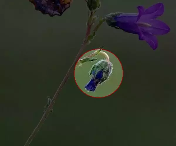 花序顶生及腋生,分枝,果期伸长,花序轴、苞片、花梗及花萼均被密糙伏毛;苞片线形至线状披针形;花梗近直立,长1-3毫米,果期伸长达1厘米;花萼长10-13毫米,5裂至近基部,裂片线状披针形,先端渐尖,果期长约1.8厘米;花冠蓝色,长达2厘米,筒部与萼等长或稍长,微弯曲,无毛,檐部直径约1.2厘米,裂片近圆形,宽约5毫米,喉部附属物画笔状,扁平,长约2毫米;雄蕊着生喉部之下,内藏,花药长约3毫米,花丝长约2.5毫米;花柱长1.1-1.3厘米,稍伸出喉部,柱头头状,微2裂。小坚果长约6毫米,有明显的网状皱褶及小疣点。