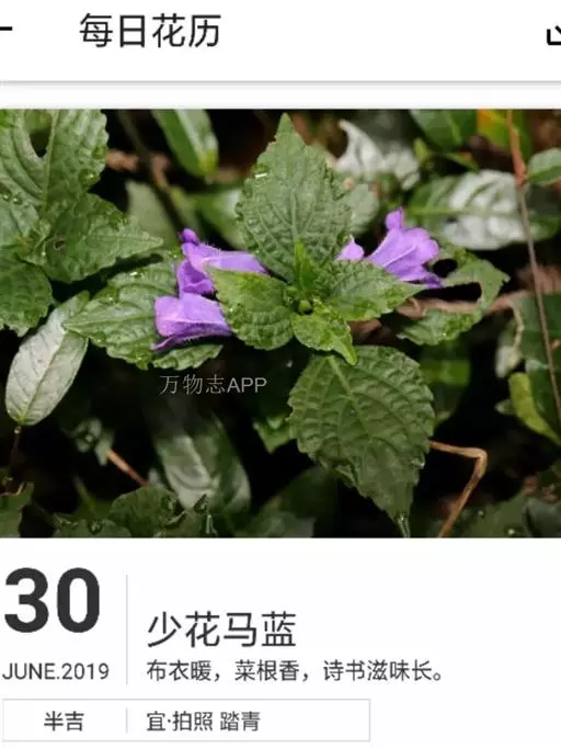 多年生草本,高14-16厘米;不育枝出自茎基部叶腋,密被褐色柔毛,其叶对生,具褐色斑点,近扇形,长0.7-1.6厘米,宽0.7-2厘米,先端钝圆,边缘具不明显之5-9波状圆齿,基部宽楔形,腹面疏生褐色柔毛,背面无毛,边缘具褐色睫毛,叶柄长4-8毫米,具褐色柔毛,顶生者阔卵形至近圆形,长5.8-6毫米,宽6.5-6.6毫米,边缘具不明显之7波状圆齿,两面无毛。花茎疏生褐色柔毛。茎生叶对生,扇形,长约8.5毫米,宽约10.5毫米,先端近截形,具不明显之6波状圆齿,基部楔形,两面无毛,叶柄长约3.5毫米,具褐色柔毛。