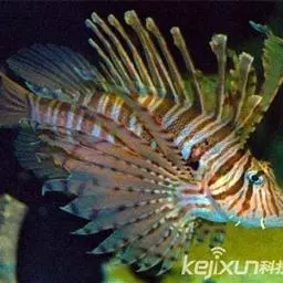 斑鳍蓑鲉是鲉科,蓑鲉属硬骨鱼。体长25-40厘米,体表黄色,布有红色至棕色条纹。背部有毒棘,胸鳍羽…